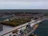 Prinz Eugen in harbor, U-Boat bunker in background |